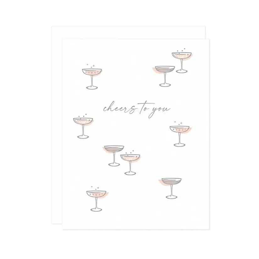 Our retro Cocktails Cheers to You card is perfect for weddings, engagements or any reason to raise a glass. A2 size (4 1/4" x 5 1/2" folded) • blank interior • letterpress printed on heavyweight FSC cardstock • white envelope • packaged in a clear sleeve
